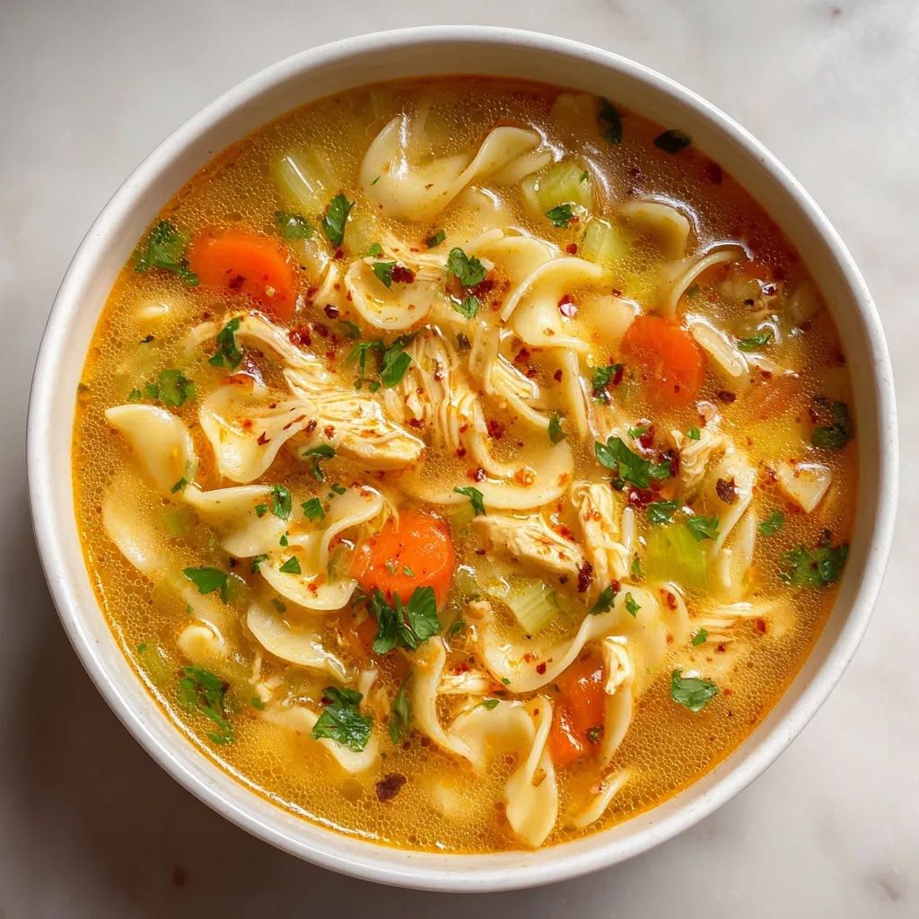 The concept of a classic Chicken Noodle Soup is about much more than just putting meat and water in a pot because it is truly the ultimate symbol of home cooking and care. This recipe is designed to help you create a golden and shimmering broth that is packed with the deep flavors of slow cooked poultry and fresh garden vegetables and soft noodles. Most people think that making a high quality soup from scratch is a difficult task that takes all day but this version is simplified so that even a total beginner can achieve professional results. You are essentially building a base of flavor using what chefs call aromatics which are things like onions and carrots and celery that release their magic as they gently simmer. It is a wonderful way to transform basic and affordable ingredients into a meal that feels rich and luxurious and incredibly satisfying for the whole family. When you see the finished soup you will notice the bright colors of the vegetables and the steam rising from the bowl which creates an immediate sense of peace and relaxation. It is the perfect balance of hydration and protein and carbohydrates all brought together in one single pot that makes cleaning up a breeze for anyone who hates doing dishes.