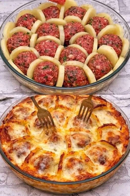 Meatball and Potato Casserole is a wonderful and hearty dish that combines two of the most popular comfort foods in the world into one single baking tray of pure happiness. This recipe is all about taking juicy and seasoned meatballs and layering them with soft and golden potato slices before smothering everything in a rich sauce that bubbles away in the oven. It is a traditional style of home cooking that relies on the oven to meld different flavors together until they become a unified and delicious meal that can feed a whole group of hungry people. You might think of it as a modern twist on a classic meat and potatoes dinner because it brings a level of convenience and coziness that you just cannot get from cooking everything in separate pans. The beauty of this dish lies in the way the juices from the meatballs soak into the potatoes while they bake which makes every single bite incredibly flavorful and tender. It is a masterpiece of simple kitchen preparation that proves you do not need to be a professional chef to create a dinner that looks beautiful and tastes like it was made with a lot of love. When you pull this steaming tray out of the oven you will see the melted cheese and the golden edges of the potatoes which promise a wealth of texture and a very satisfying eating experience. It is the kind of recipe that reminds you how amazing a few basic ingredients can be when they are arranged with care and allowed to cook slowly until they reach perfection.