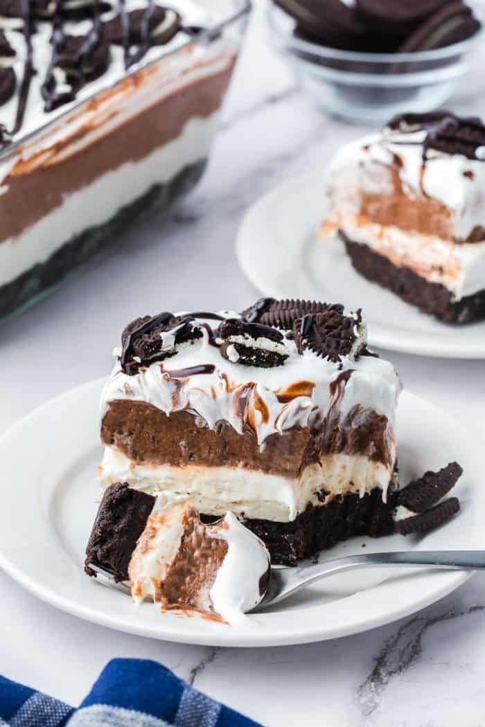 Another great tip is to toast some chopped nuts like almonds or walnuts and sprinkle them between the layers for an added crunch that contrasts with the soft cream. If you find the cream cheese too heavy you can swap half of it for Greek yogurt to give the dessert a slight tang and a lighter feel. Always wipe your knife with a warm damp cloth between every cut when serving to ensure that each slice looks clean and the layers stay distinct. Adding a tiny bit of lemon zest to the cream mixture can also provide a bright and citrusy note that cuts through the richness of the dairy.