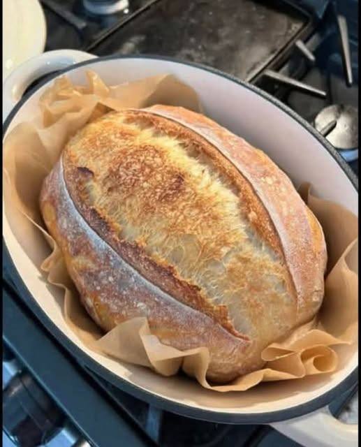 If you don’t have a Dutch oven, you can use a pizza stone. Preheat the stone in the oven, and place the shaped dough directly onto the stone to bake.