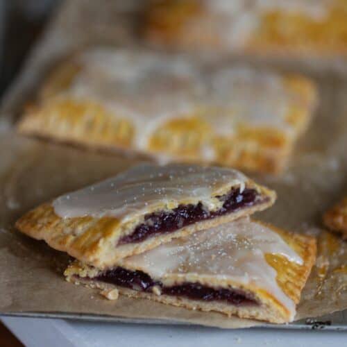 Remove from the oven and let them cool for ten minutes. If you want a glaze mix powdered sugar milk and vanilla until smooth. Drizzle over the cooled pop tarts.